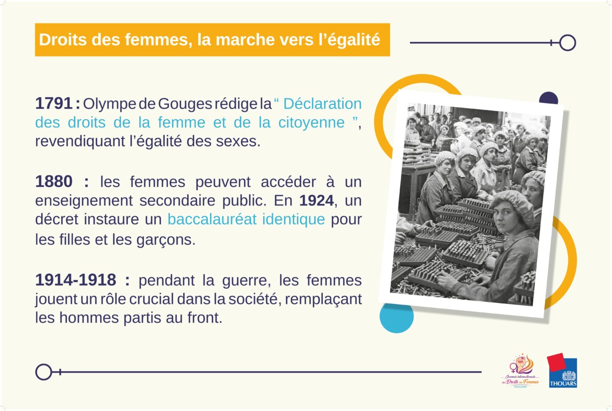 À cette occasion, la Ville de Thouars propose une programmation dédiée à l’égalité, à la mémoire des luttes et à la valorisation des parcours de femmes thouarsaises.